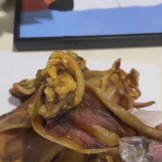 These pre-cut Australian pork ears provide all the dental benefits of full ears in a more manageable size. The half-moon shape exposes cartilage layers for better teeth cleaning while being easier for small-to-medium dogs to handle.